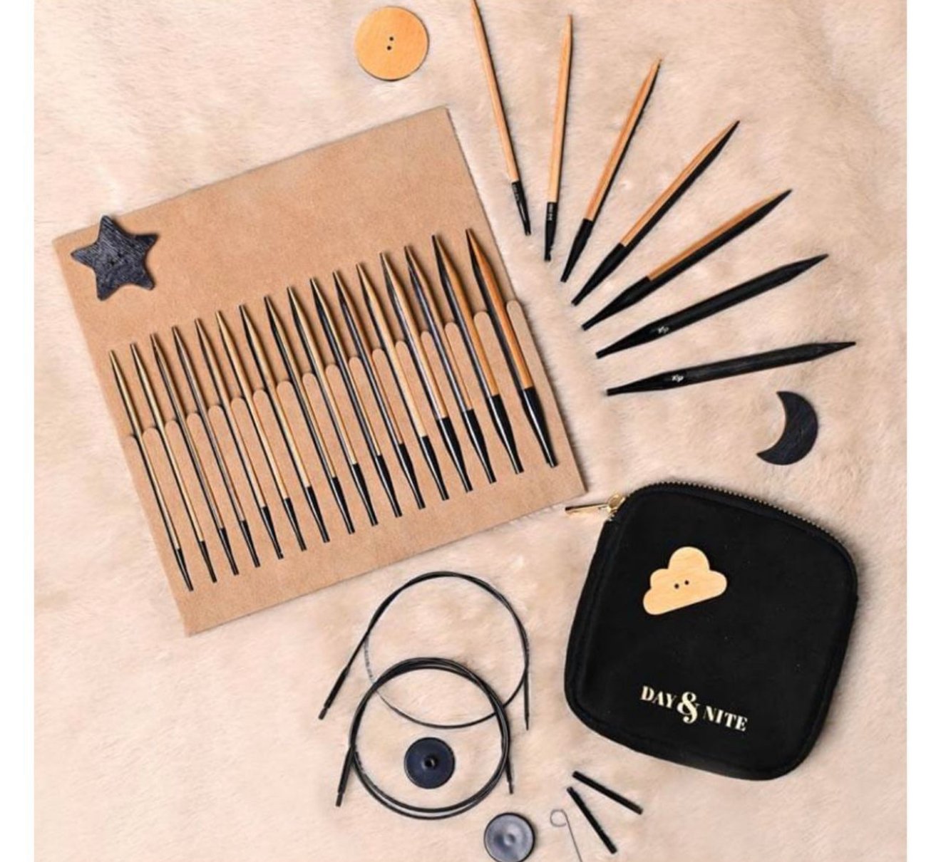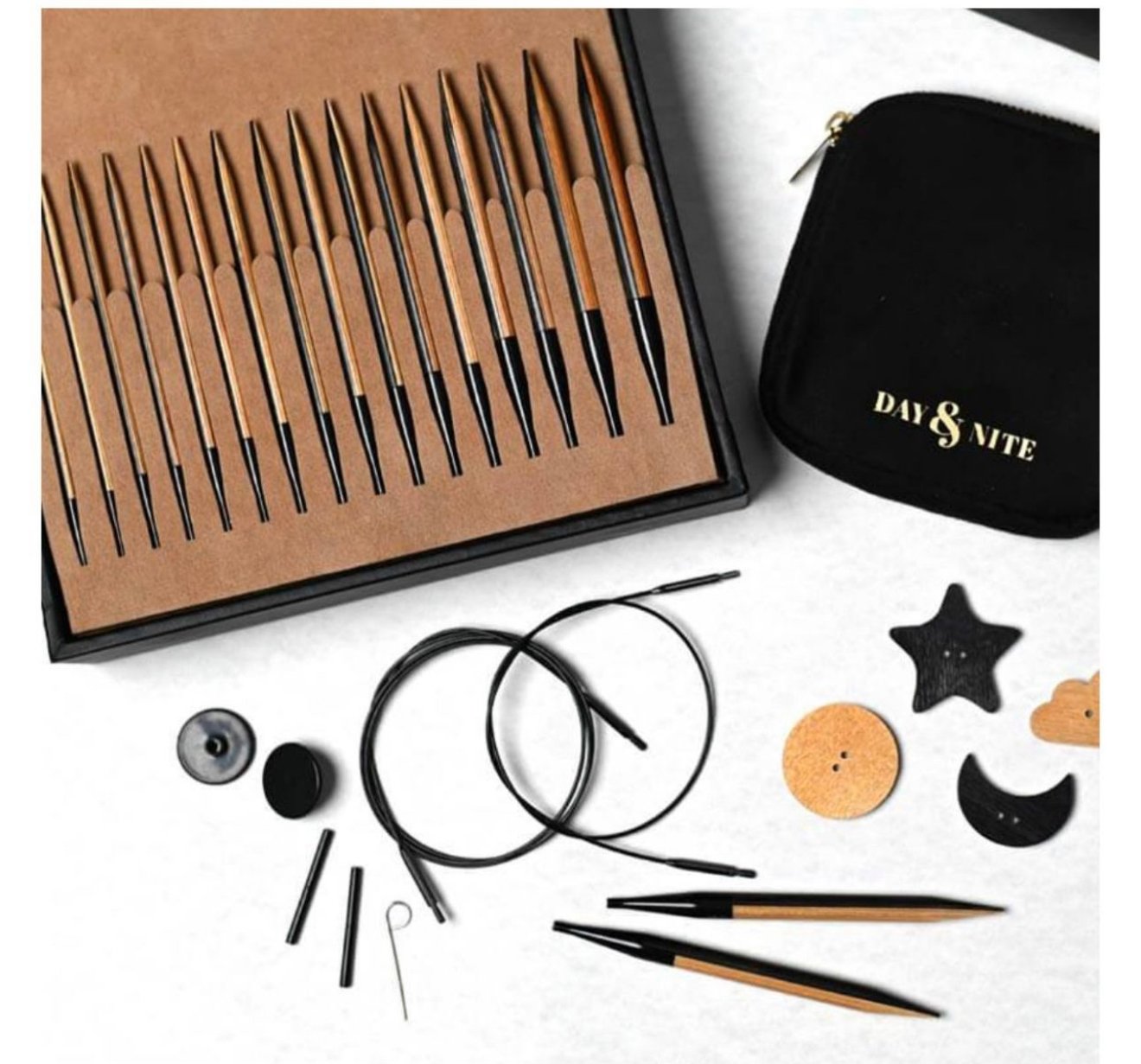 KnitPro Day & Nite prisukamųjų virbalų rinkinys – tai išskirtinis ir inovatyvus rinkinys, sukurtas mezgėjoms, kurios nori matyti kiekvieną dygsnį aiškiai, nepaisant siūlų spalvos. Dėl kontrastingų juodos ir šviesios natūralios medienos tonų šie virbalai suteikia puikų foną tiek tamsiems, tiek šviesiems siūlams.